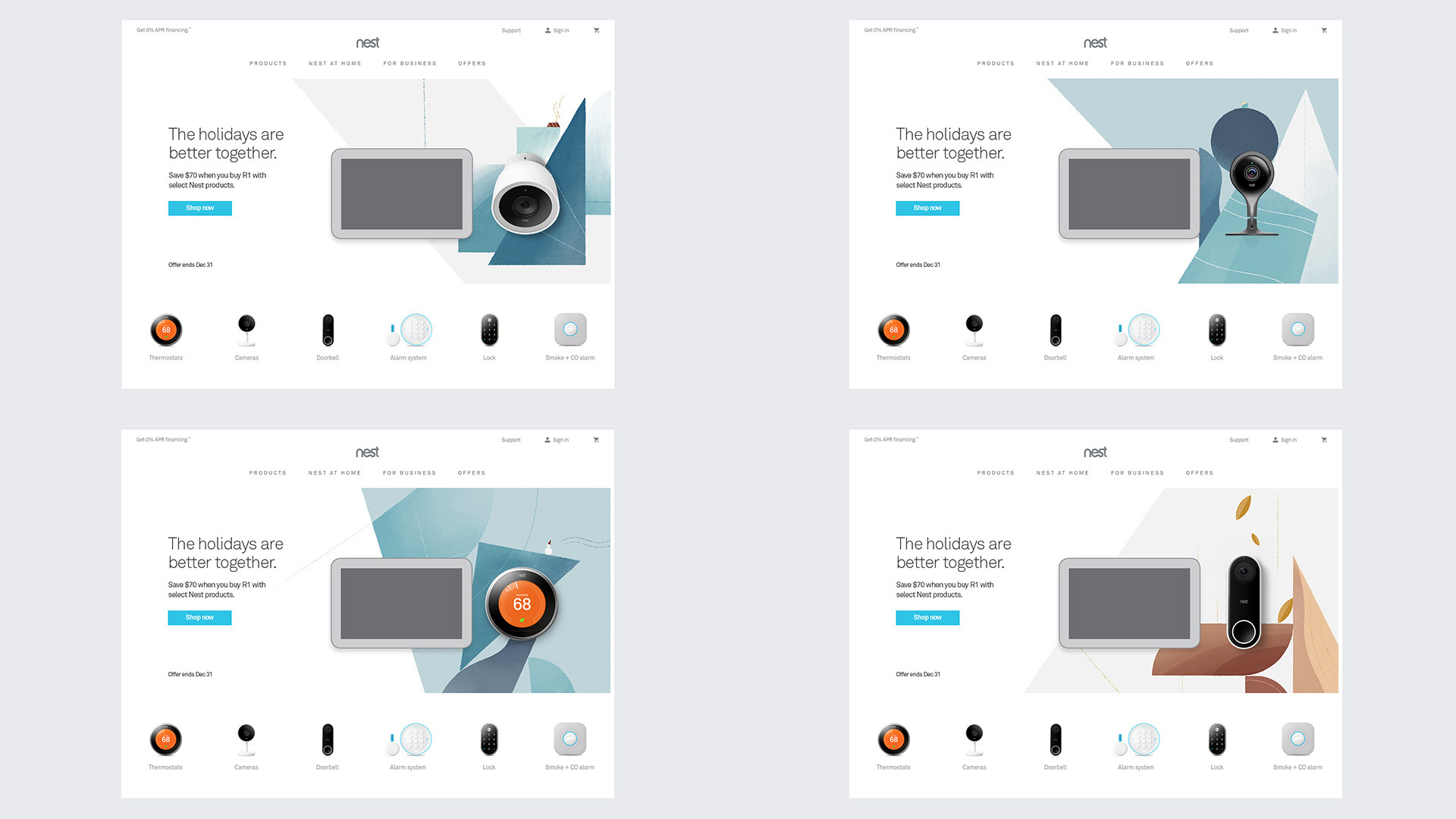 Holiday graphic design for multiple Nest product. Simple geometry with clean texture to celebrate this beautiful season!!